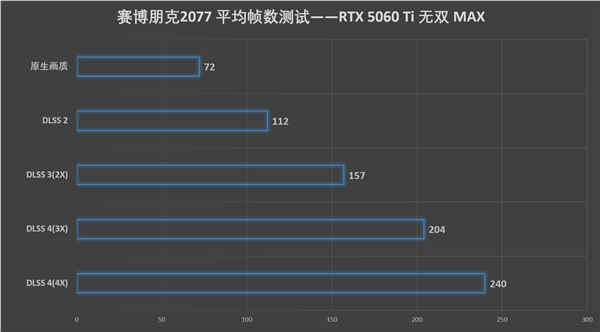 如果关闭光线追踪,那么2K画质下的2077则是一个非常流畅的画面,在原生画质下就有着72帧的可玩帧数,更不用说使用了DLSS技术后,多重加持下帧数可以来到至高240帧,对于一款3A游戏来说,240帧可以说是非常之流畅的。