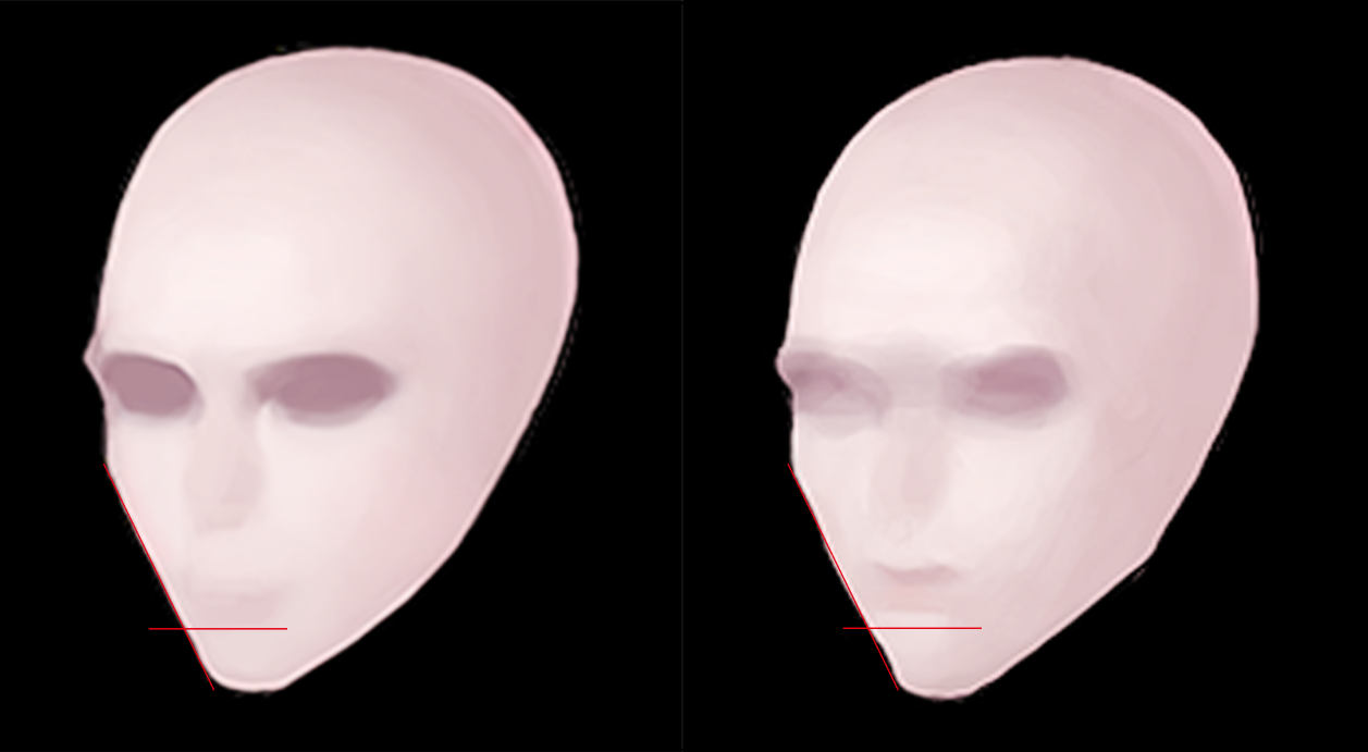 横线上部分为我说的下巴光滑,左光滑右不光滑,假神力有脸颊不平整+有白边的。