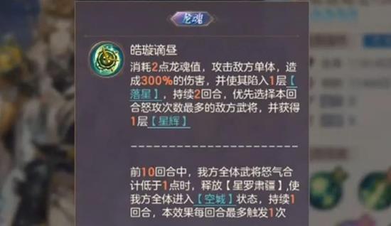 当敌方成员处于落星状态时,即使满血也可能被直接秒杀。战斗开始时,弈辰诸葛亮会吸收我方武将的怒气,每吸收700点怒气就能获得一点星辉,这个效果会无视敌方全体的怒气抵抗。