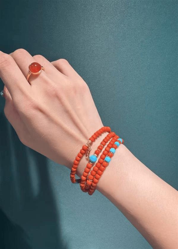 考虑到年轻人不一样的需求,一品尚美珠宝品牌主理人虞晨航也对原来的黄金饰品做了改良。“一条黄金手链里面,会编一些翡翠、红宝石进去,让整条手链脱离黄金那种俗气的感觉,会更加的时尚。”黄金也可以结合南红和绿松石去打造一种民族风、新中式的风格。