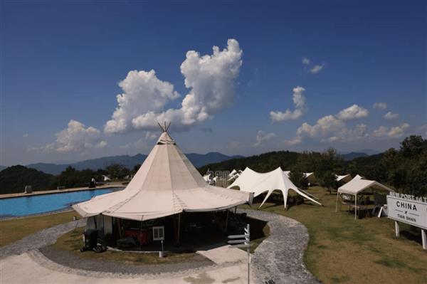 灵感的落地也并不简单。实际上草帽帐直径有14米,面积很大,结构还要稳固、还要防风,难度很大。正常的草帽的帽檐还要往上翘,为了防止被风掀翻,义乌市宣闻户外用品有限公司总经理朱悦来上方开出风口。后续又对出现的问题一一去探查解决,总共花费了半个月的时间。