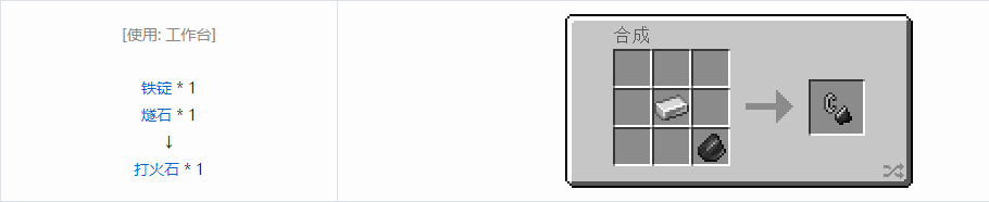 当在固体、非透明方块上面或在可燃烧方块的旁边使用,打火石会在被使用的表面生火。打火石能使用 65 次。
