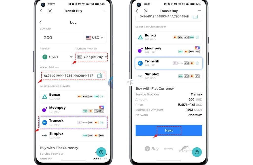 1、打开TokenPocket,点击 Transit Buy【购买】,进入到Transit Buy的交易界面,默认的界面是买入的界面,设置好以后,点击【Next】进入到下一个界面。
