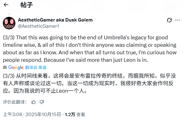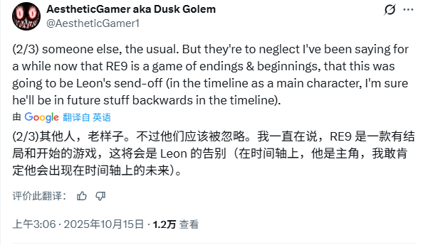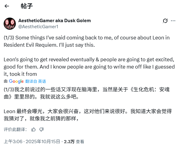 Dusk在社交平台X上表示:“我之前说过的一些话,现在又回到了我这儿——当然,是关于《生化危机9:安魂曲》里的里昂的。我只能这么说,里昂迟早会被正式公开,届时大家都会感到兴奋,那很好。而我也知道,到时候肯定会有人说我只是猜的,或者是从哪里抄来的。”