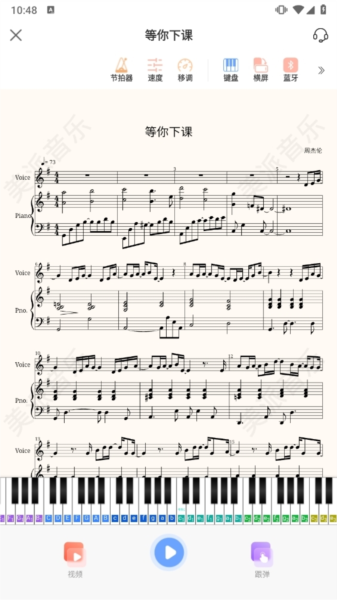 进入乐谱界面后,进行看谱,然后你就可以进行弹奏了。