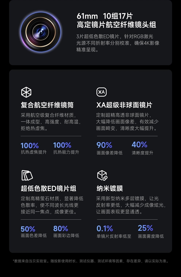 二、核心配置:画质与性能双突破,自研技术 + 行业首创成亮点(一)光学硬件:大师级镜头 + 三重技术,筑牢画质根基