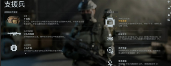 在正式开始前,可以进入【战备组合】界面,确认携带医疗包与补给箱,确保任务中可以循环使用。