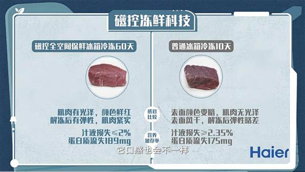 在保障空间与秩序的基础上,海尔麦浪冰箱搭载唯一“国奖级”磁控全空间保鲜?科技,守护年轻用户三餐的新鲜。该项科技由海尔冰箱与中科院历时5年联合研发,已申请204项发明专利,从本质上破解了“鲜味易流失”的难题。在央视频极限囤鲜挑战中,熊猫笋、牦牛肉、鱼子酱、雅鱼等娇贵食材在储存7天后仍保持接近初始状态。具体来看,该科技通过稳态弱磁场主动分解食材内部水分子团簇,从细胞层面抑制大冰晶生成,可实现“冻鱼60天,海里一样鲜”。