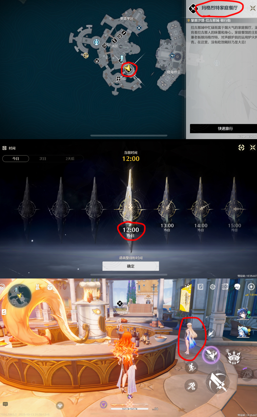 抬头,飞到头顶上方的小岛上,调整时间至:次日晚上22:00,卡提希娅在小岛的亭子前,与之进行第一次对话。