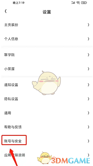 2、进入设置,点击【账号与安全】。