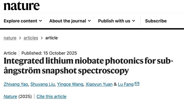 这一成果标志着我国在智能光子技术及高精度成像测量领域达到了新的高度,相关研究成果以《集成铌酸锂光子学亚埃米级快照光谱成像》发表于学术期刊《自然》。