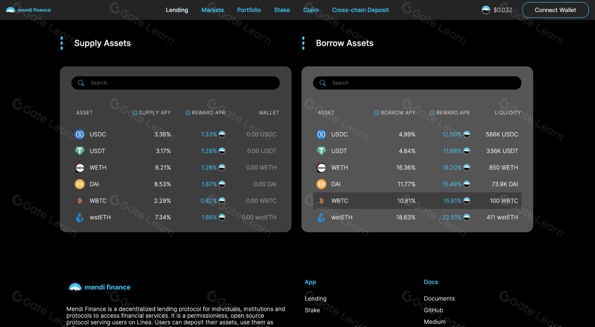 Mendi Finance 支持主流货币包括 USDT、USDC、DAI 等稳定代币。Mendi 拥有可靠的安全模型,收到 Pyth 和 Chainlink 等去中心化预言机价格保护,为用户提供安全的交易支持。