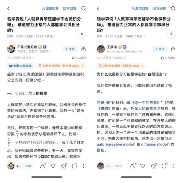 时间:2025-10-16 | 作者: | 阅读:0“人就算再笨,还能学不会微积分吗?”上世纪,科学巨擘钱学森的这句疑问,在当下互联网世界再度 “翻红”,掀起一场关于科学认知与学习边界的深度讨论。近期,这一话题不仅吸引了马骁、王梦迪等海内外顶尖青年学者参与,更汇聚了知乎数学领域答主与普通网友的智慧,共同打造出一场跨越代际、兼具学术深度与大众趣味的思想对话。