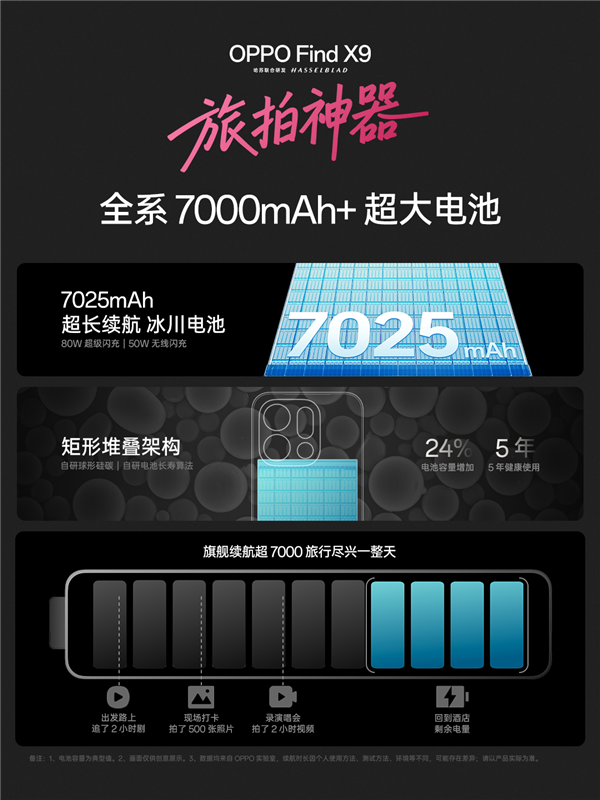 另外,Find X9全系搭载7000+mAh超大冰川电池,续航表现全面霸榜,告别充电宝,旅拍尽兴出片;更有山海通信增强芯片强势加持,信号时刻在线。