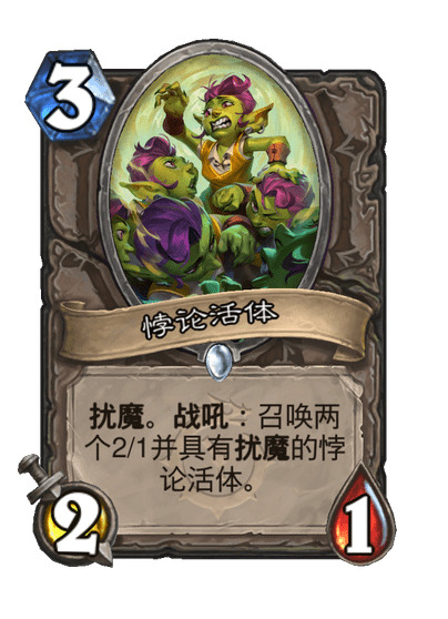 扰魔。战吼:召唤两个2/1并具有扰魔的悖论活体。