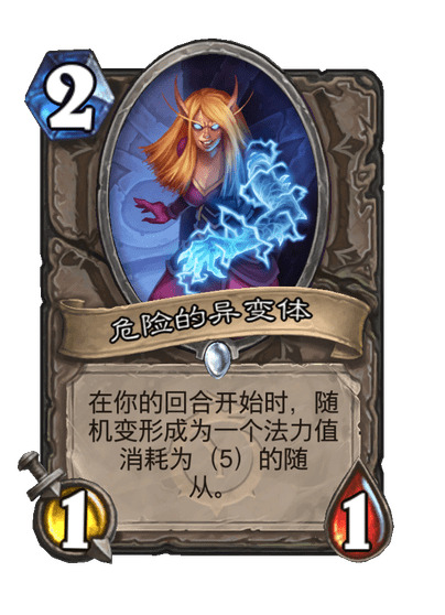 在你的回合开始时,随机变形成为一个法力值消耗为(5)的随从。
