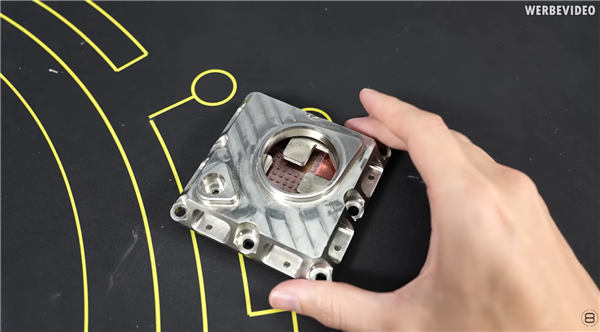 外壳内部有许多微小的喷嘴,这些喷嘴对准芯片的八个核心,Der8auer指出,每个喷嘴的方向和冷却液的流速都是确保每个核心都被液体完全覆盖的关键因素,如果某个部分没有被液体覆盖,就可能导致该部位过热。