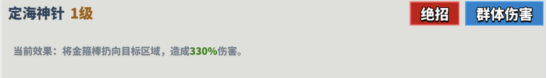 描述:将金箍棒扔向目标区域,造成330%伤害。