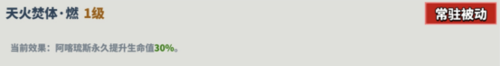 描述:受到致死伤害时立即回复40%血量,只能触发一次,进入焚体状态时,重置触发次数。