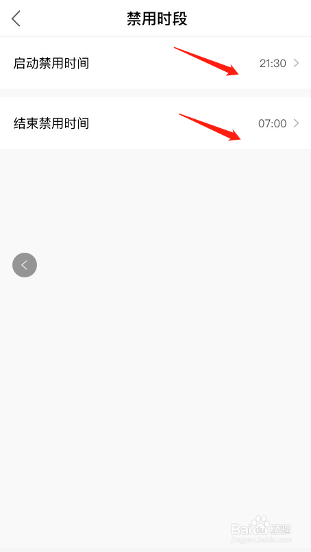 4、打开禁用时段后,根据自己需要设置启用和结束禁用时间