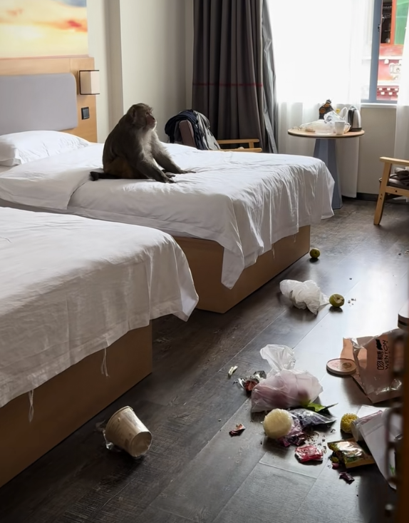 男子西藏旅游 回酒店发现猴子端庄坐床上:零食散落一地