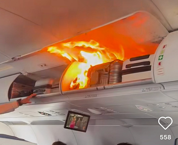 火舌喷出行李架!国航航班因旅客包内锂电池自燃备降上海