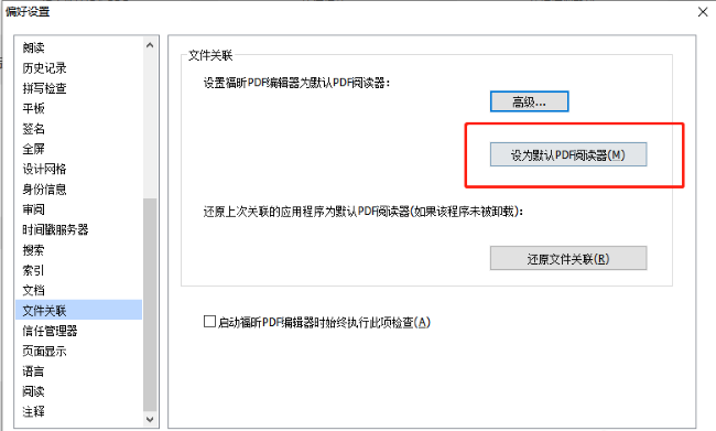 4、然后点击右侧中的"设为默认PDF阅读器"按钮,最后点击下方中的"确定"保存即可。