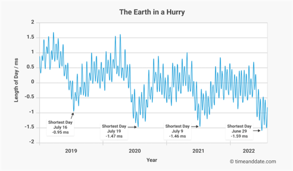总体来说地球的每天都在变长,但在某些地质时期,它也会出现短期的加速,比如在过去2万年,每天大概变短0.6毫秒。