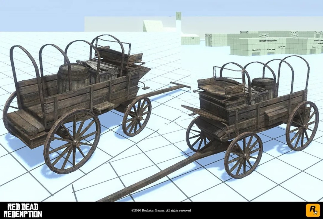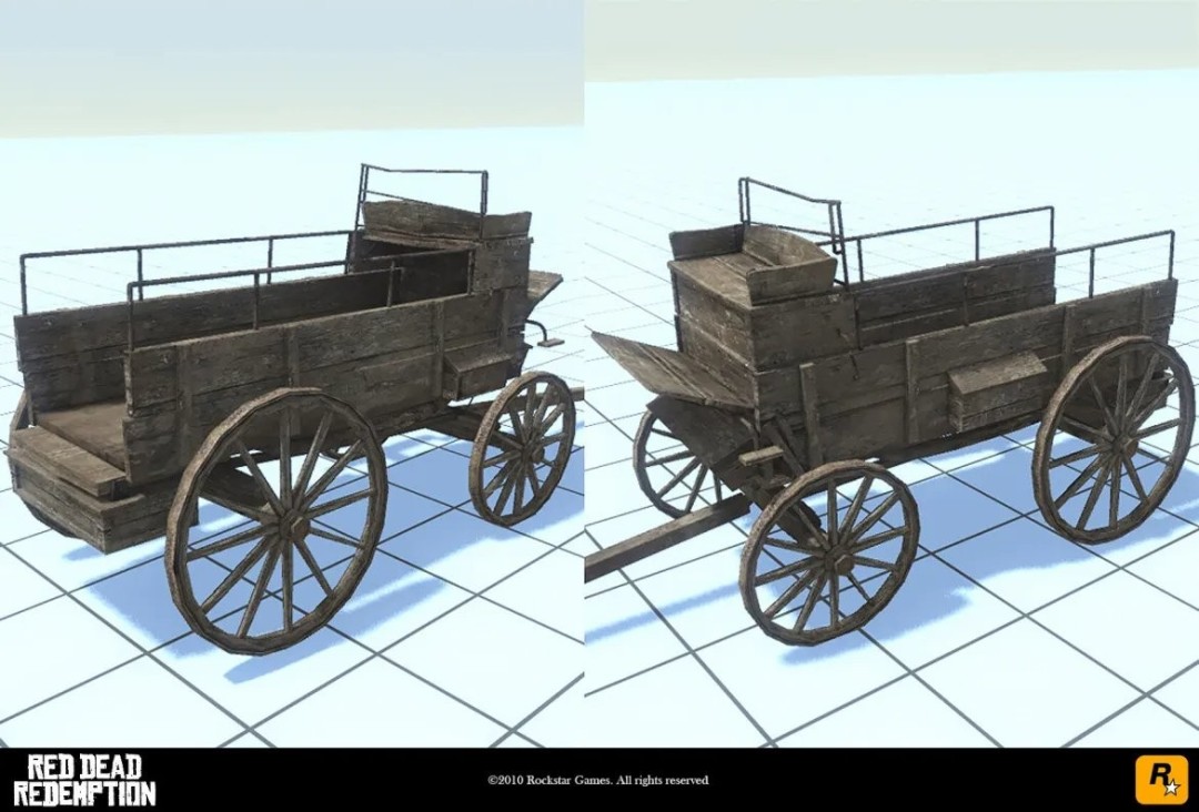 在其ArtStation作品集中更新了《荒野大镖客:救赎》早期开发阶段的截图,其中还包含游戏内3D模型的开发流程渲染图。