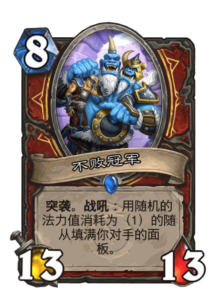 突袭。战吼:用随机的法力值消耗为(1)的随从填满你对手的面板。