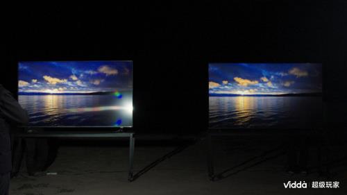 如果说C5重构了家庭影音体验,那么发现X2026则直面了电视用户的日常痛点——反光。在"屏"年2025,Vidda没有陷入技术名词的堆砌,而是通过"墨晶屏"(AG+LR双层结构)真正解决了强光下的画面清晰度问题。极限测试中,X2026在强光下仅出现柔和光斑,画面依然清晰,而竞品则出现刺眼光晕。更令人惊喜的是,Vidda宣布将把这一技术下放至2000元价位段,践行"技术平权"承诺。