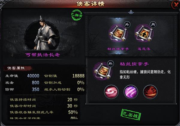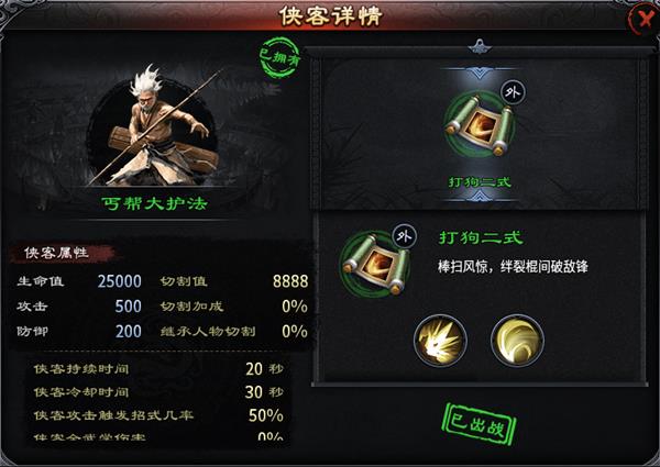 还记得在初入江湖时结缘的那位江湖侠客吗?离开第一大陆后TA也飘然而去,但江湖讲的就是四海之内皆兄弟,很快玩家就会接触到更多这样的“伙伴”,比如说在第二大陆,拜入丐帮后不久,通过指定任务就能认识一个“丐帮大护法”侠客,他会隔一段时间出现一次,帮助玩家战斗,除了普通攻击外,他还有概率触发群体切割伤害,对于初入江湖不久,输出能力不强的玩家来说是个非常靠谱的伙伴。