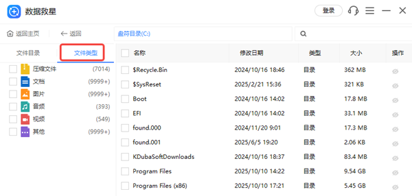 如果文件彻底删除、清空回收站、甚至格式化了硬盘,就需要用到专业的数据恢复软件【数据救星】。它支持恢复文档、照片、视频、压缩包等多种文件类型,而且扫描速度快、恢复率高,界面也特别简单。步骤如下: