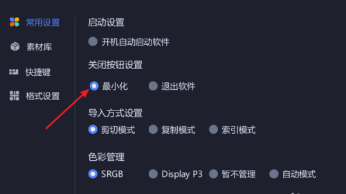 4、然后找到右侧中的"关闭按钮设置",将其中的"最小化"勾选上就可以了。