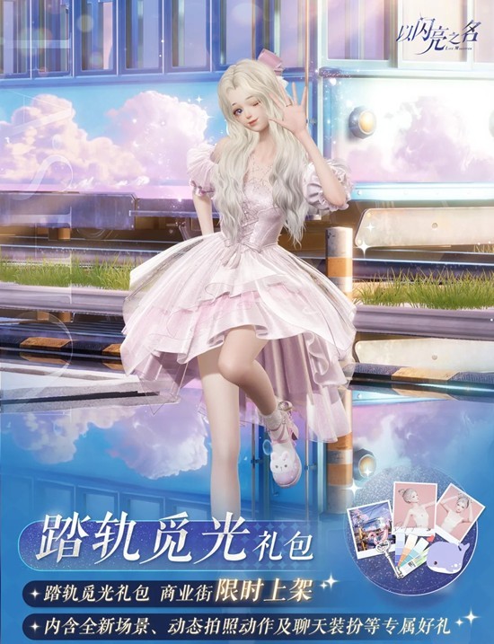 5.踏轨觅光复刻外观礼包:限时礼包售卖期间,合伙人可以4.6折的价格直接购买踏轨觅光外观礼包,内含摄像机镜头动态动作【幸空恋律】、拍照场景【澄境启程】、拍照动作【繁星指挥家】、拍照运镜【幸空恋律】、背景音乐【幸空恋律】、聊天气泡【浮鲸之恋】、潮流色卡*26和遇之钥*40,该礼包永久限购1次。