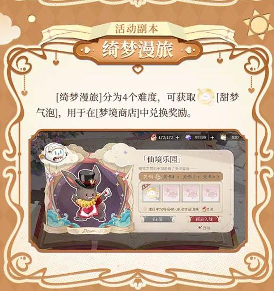 ?[绮梦漫旅]&[梦境商店]:通过[绮梦漫旅]获得道具[甜梦气泡],可在[梦境商店]中消耗获取奖励。