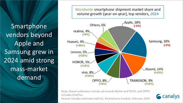 - 最新全球前5大智能手机厂商公布:小米第三 坐稳中国品牌第一