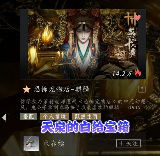 名片1800,气泡1600,头像450,门派题跋300,散千金题跋999,姿态不失风采600,姿态游刃有余600,置景白给宝箱1500
