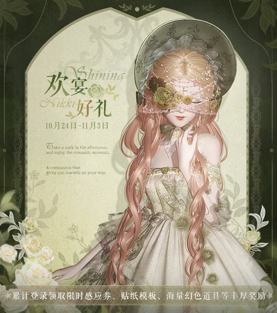 10月24日更新后,【欢宴好礼】累登福利活动开启!活动期间,首日登录即可领限时感应道具「盛酒金杯」*10!累计登录还可获得贴纸模板「酒神欢宴」和大量幻色材料等超值奖励~