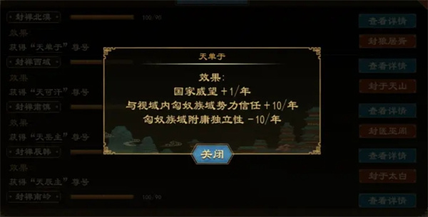 点击尊号下划线,可预览封禅战略成功后获得的对应尊号效果。