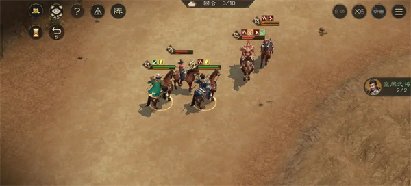 第一回合三弓后退两格,(因为直接冲打不到小兵,也打不死太史慈,下个回合太史慈和他的小兵群殴顶不住。)黄盖和孙尚香前进一格吸引敌方火力。敌方回合时会冲出来打黄盖和孙尚香,他们诱敌深入的使命也完成了。