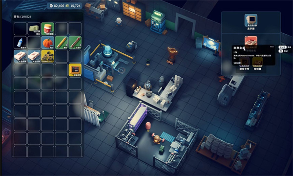 进入【技术中心】(即小明所在的几张桌子区域),可在桌上与合成装置互动,完成游戏机组装。
