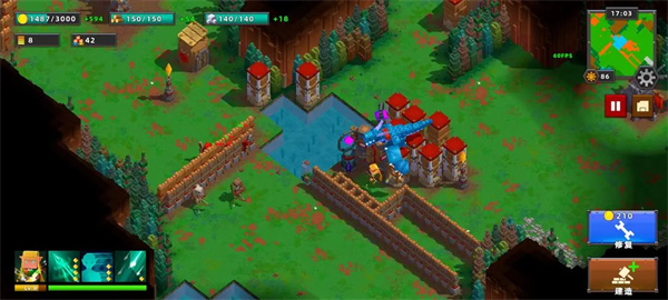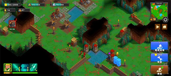 这关前期金币和木材获得很快,尽快升2级城堡,升完后立马升【城墙】,后续再慢慢补【狙击塔】;