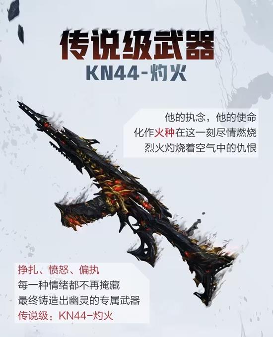 KN44-灼火的设计灵感来源于幽灵战士的复仇之心。它的每一次射击,都像是将战士的愤怒和仇恨化作火焰,直击敌人的心脏。这把武器的设计充满了黑暗与神秘,其外观如同被地狱之火锻造,每一处细节都透露出不屈的战意。