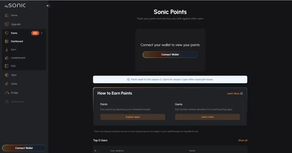 Sonic Points:供用户使用协议并与 dApps 交互Sonic Gems:适用于 DeFi 协议 Game Gems:适用于 GameFi 开发者和玩家所有这些积分将在季节性空投期间(目前为第 2 季,2025 年 6 月)转换为 S 代币(网络的本土货币)。Sonic Dev Suite