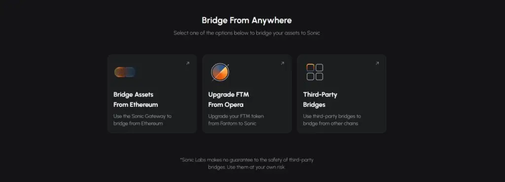Fantom 缺乏强大的 SDK、开发工具,并且与 The Graph 或 Chainlink 等服务的集成速度较慢。Sonic 提供了完整的开发套件:从浏览器、SDK、RPC、oracle、自动化到内置桥接器 - 帮助开发人员轻松部署和扩展 dApp。Bridge 更加安全可靠