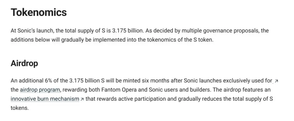 代币名称:Sonic股票代码:S区块链:索尼克总供应量:3,175,000,000 S最大总供应量:无限制流通量:3,175,000,000 S在 Sonic 推出 6 个月后,将额外发行占总供应量 31.75 亿 S 代币的 6%,并将专门用于空投计划 - 奖励 Fantom Opera 和 Sonic 的用户和开发者。