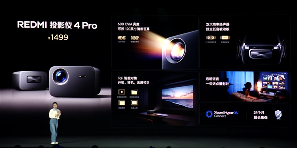 1499元!REDMI投影仪4 Pro发布:600CVIA亮度 可投120英寸巨幕
