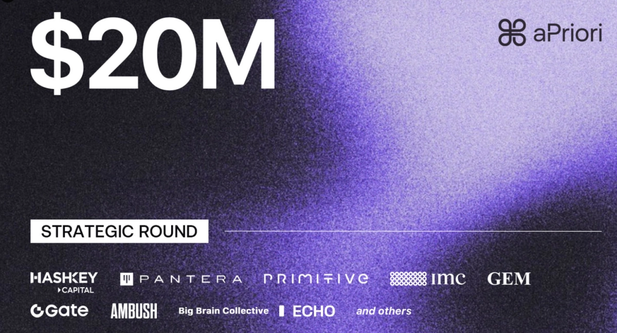 最新一轮 2000 万美元融资于 8 月公布,重点用于提升 aPriori 的可扩展性,目标实现数十亿美元级别的交易规模,并推动跨链集成至主流网络。