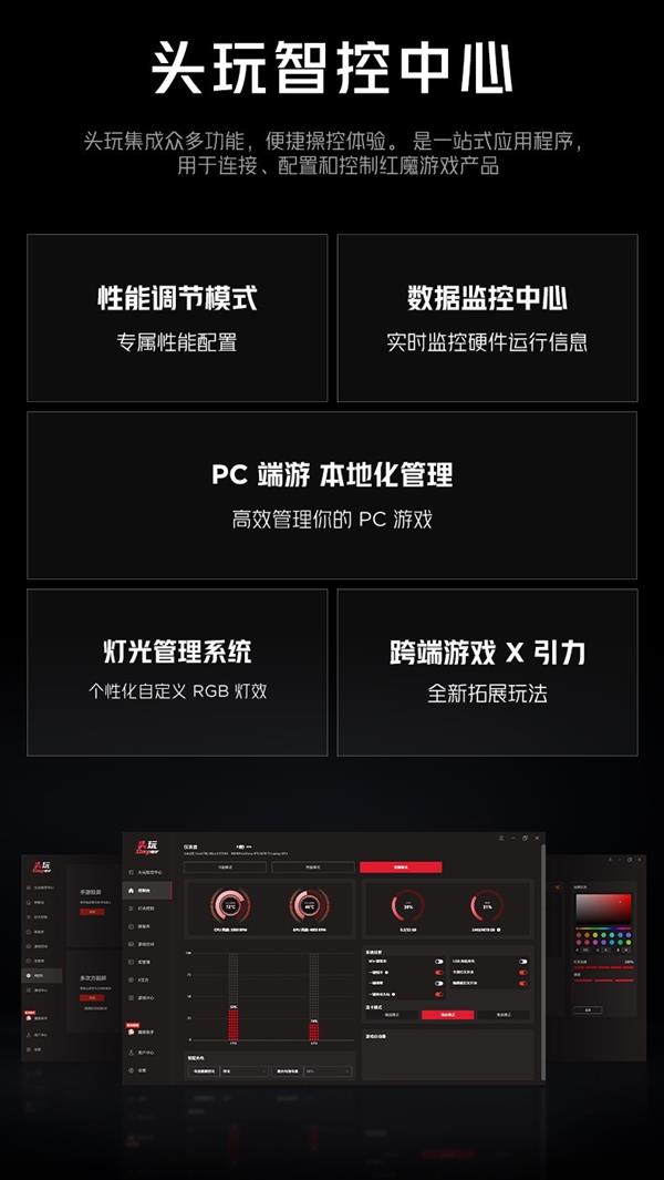 软件服务也是红魔游戏本的一大亮点,作为全球领先的电竞装备品牌,红魔通过定制化软件深挖硬件潜力,提升性能体验。全新的专属系统头玩智控中心,支持多模式切换、手游投屏、端游串流等定制优化。